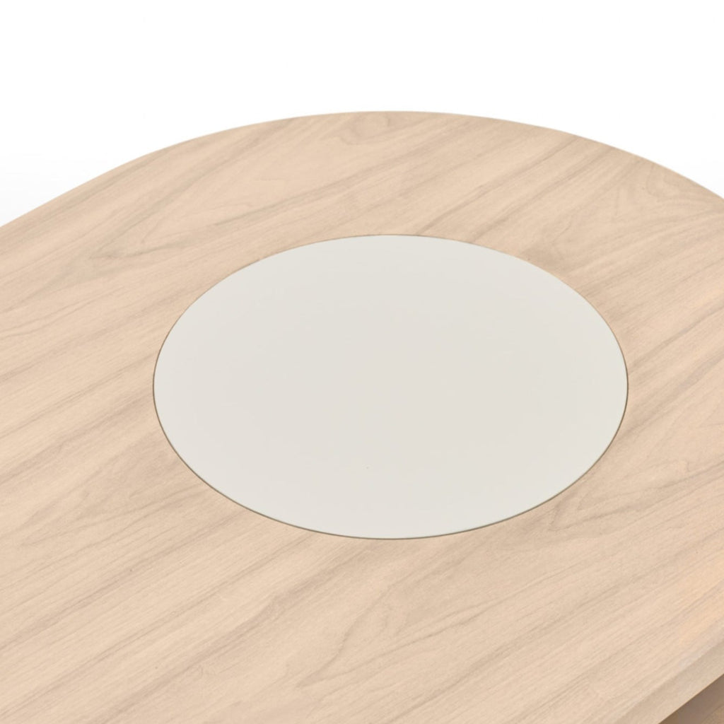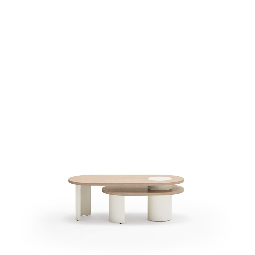 Nori Coffee Table, Two Tops Swivel, Oval 120cm, Wooden Top and Base - Cream and Natural Finish