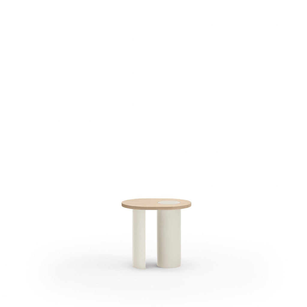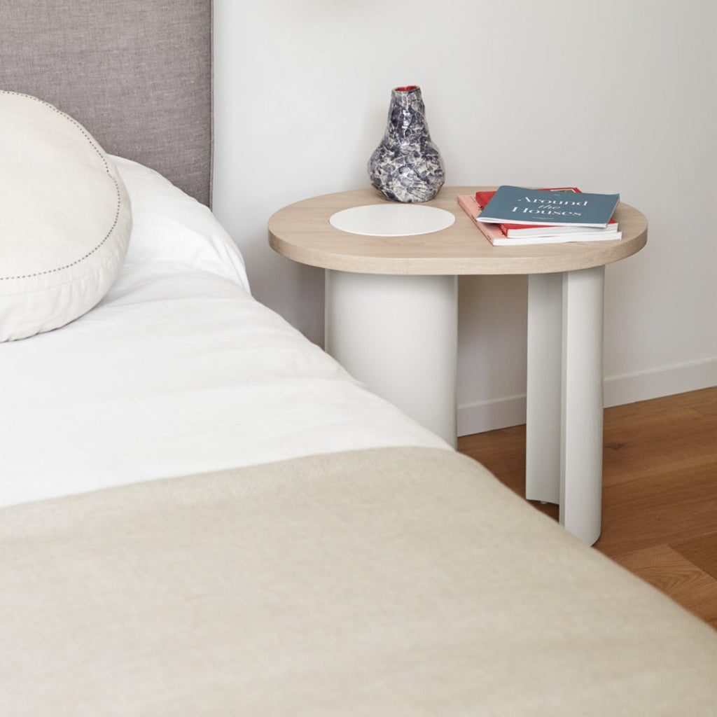 Nori Night Table, Set of Two, Oval Top 60cm, Wooden Top and Base - Cream and Light Natural Finish