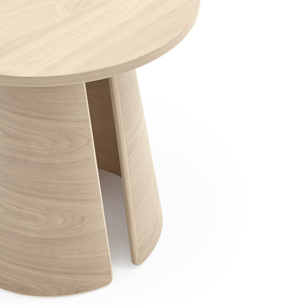 The Cep Side Table embodies minimalist elegance with its symmetrical wooden base and tactile 50cm round top.