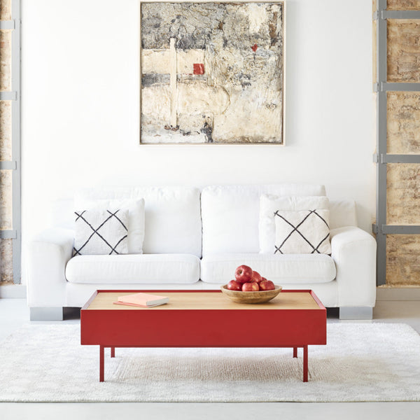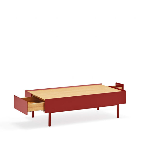 Arista Coffee Table, Rectangular, Two Drawer - Matt Red and Light Oak Finish