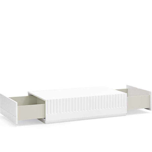 Doric Coffee Table, 110 cm Rectangular, Two Drawers - Matt White Finish