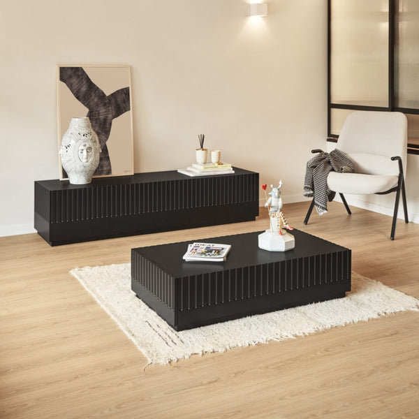 Doric Coffee Table, 110 cm Rectangular, Two Drawers - Matt Black Finish