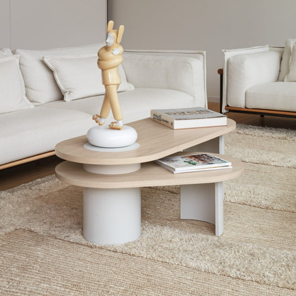 Nori Coffee Table, Two Tops Swivel, Oval 120cm, Wooden Top and Base - Cream and Natural Finish