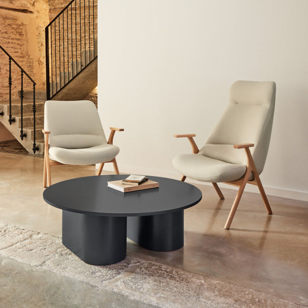 Totem Coffee Table, 110cm Round, Two Oval Base Elements, Modern Wood Design - Anthracite Finish