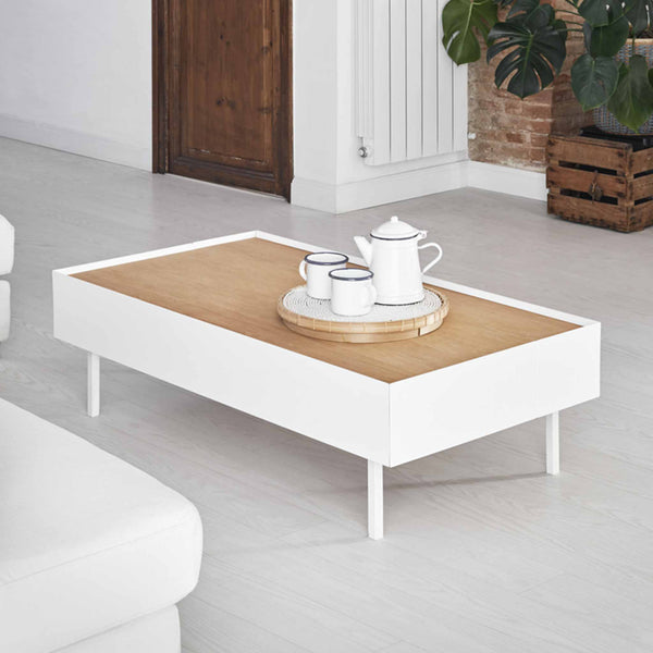 Arista Coffee Table, Rectangular, Two Drawer - Matt White and Light Oak Finish