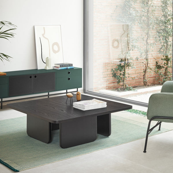 Arq Coffee Table, Square Wood Frame, Top - Black Ash Finish