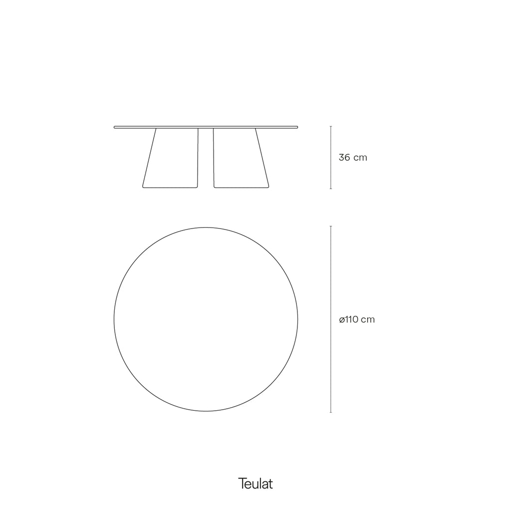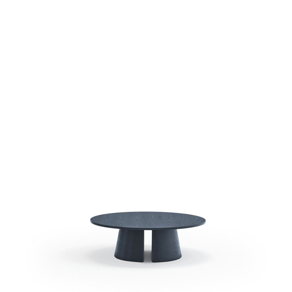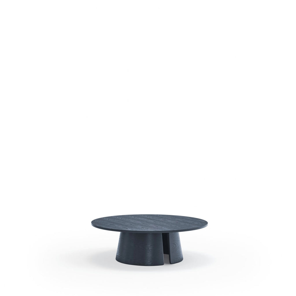 The Cep Coffee Table embodies minimalist elegance with its symmetrical wooden base supporting a generous 110 cm round top.