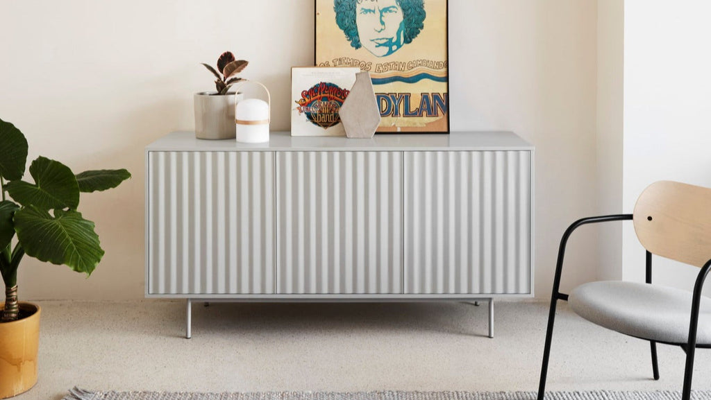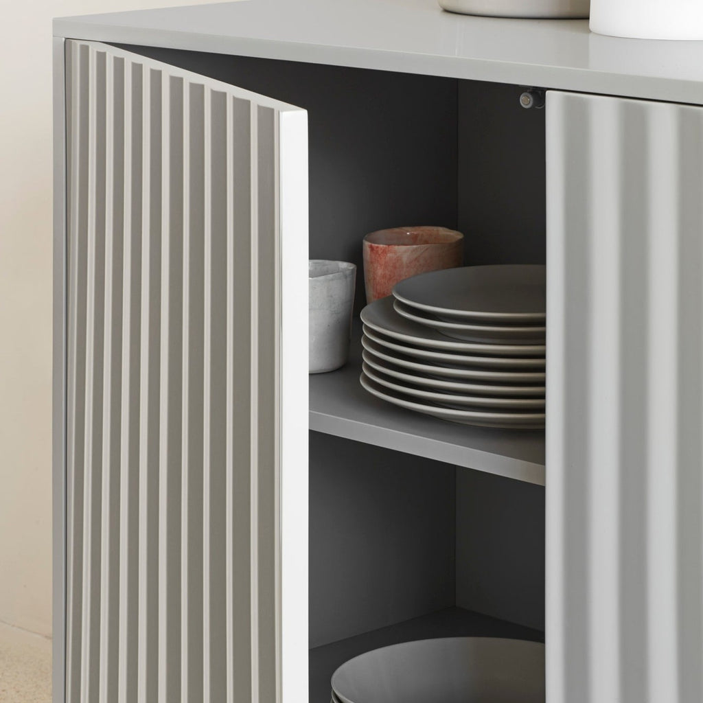Indulge in the artistic brilliance of the Sierra Sideboard, where contoured door designs create an entrancing play of light and dimension.