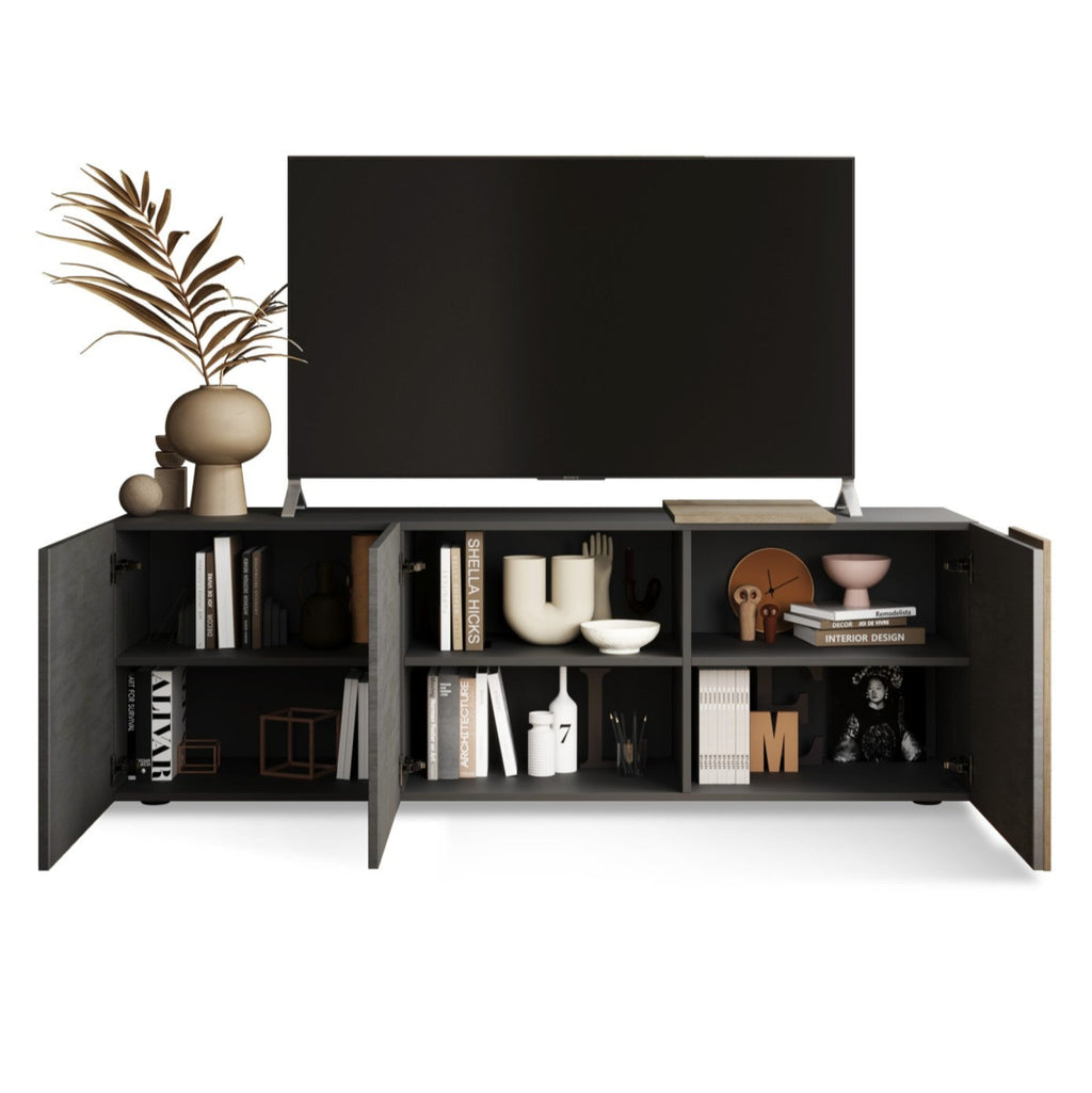 Vinovo TV Stand, Three Doors with Internal shelves - Anthracite and Light Oak Finish