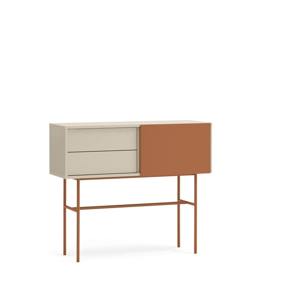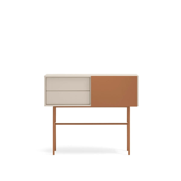 Nube Hallway Console Table, Two Drawers, One Sliding Door, Wood and Metal Design - Light Sand and Red Brick Finish