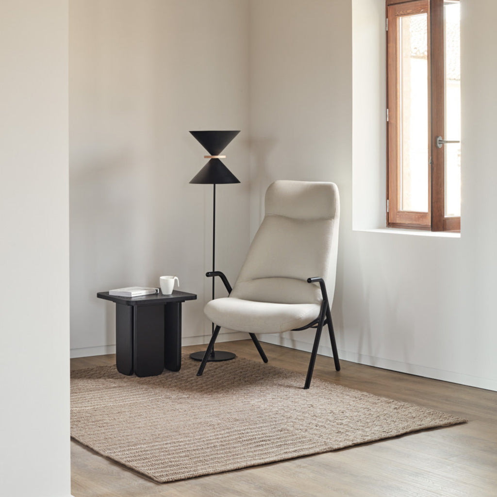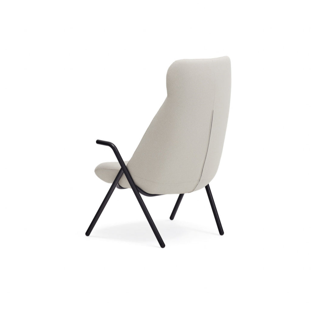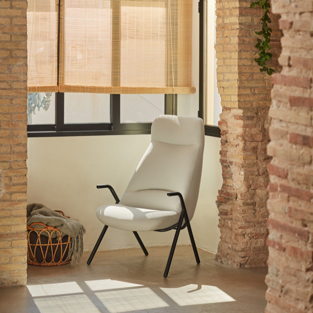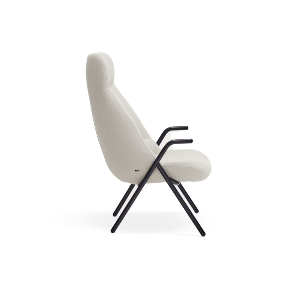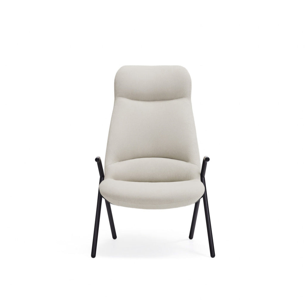The Dins High Back Armchair offers a stylish blend of a sleek black frame and arms with luxurious cream RONDO 61200 fabric.