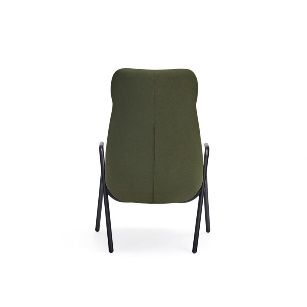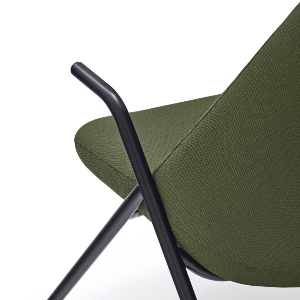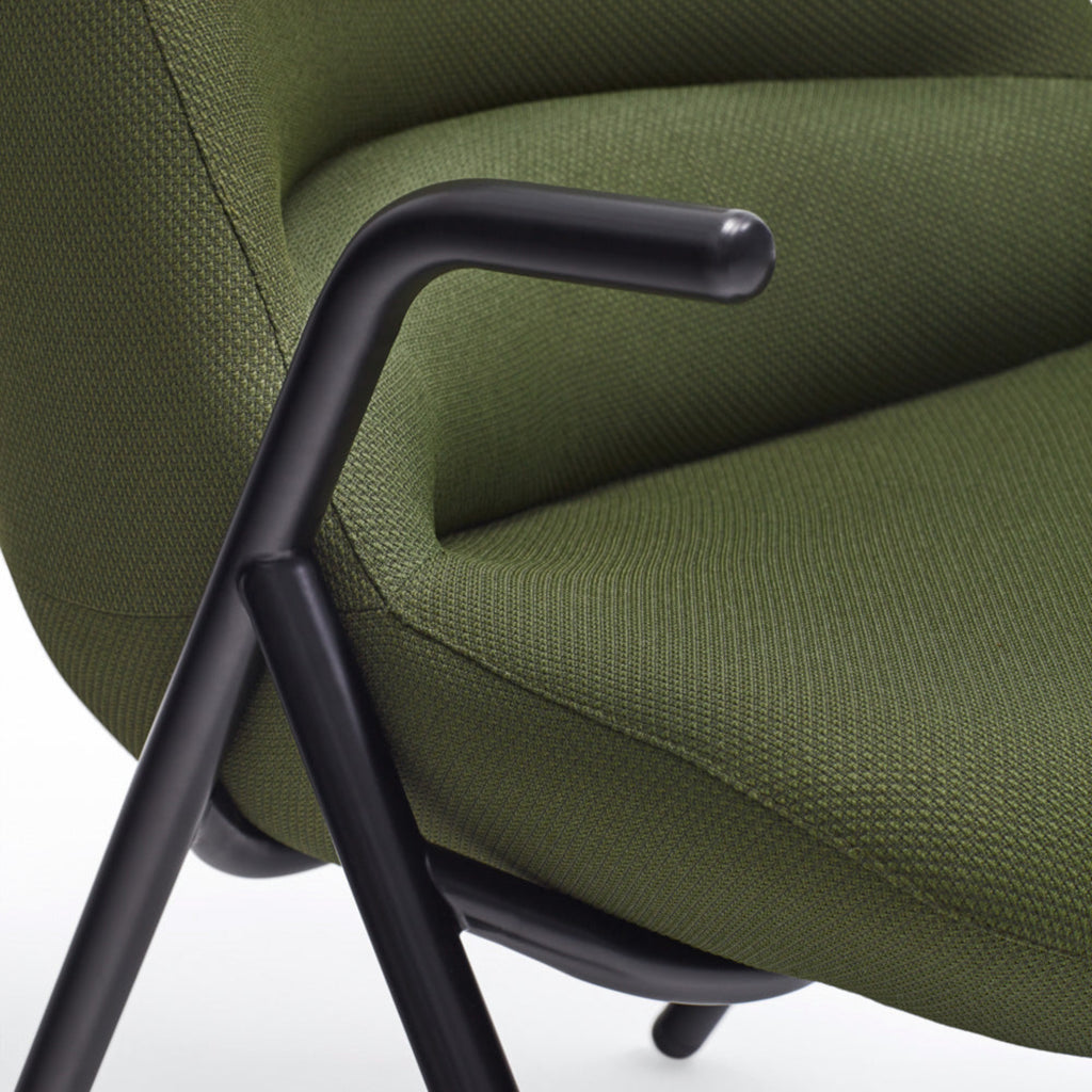 The Dins High Back Armchair offers a stylish blend of a sleek black frame and arms with luxurious dark green RONDO 68226 fabric.