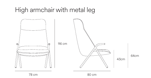 L 80 cm x W 78 cm x H 116 cm Seat Height: 43 cm Arm Height: 64 cm