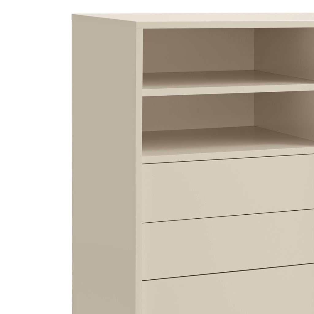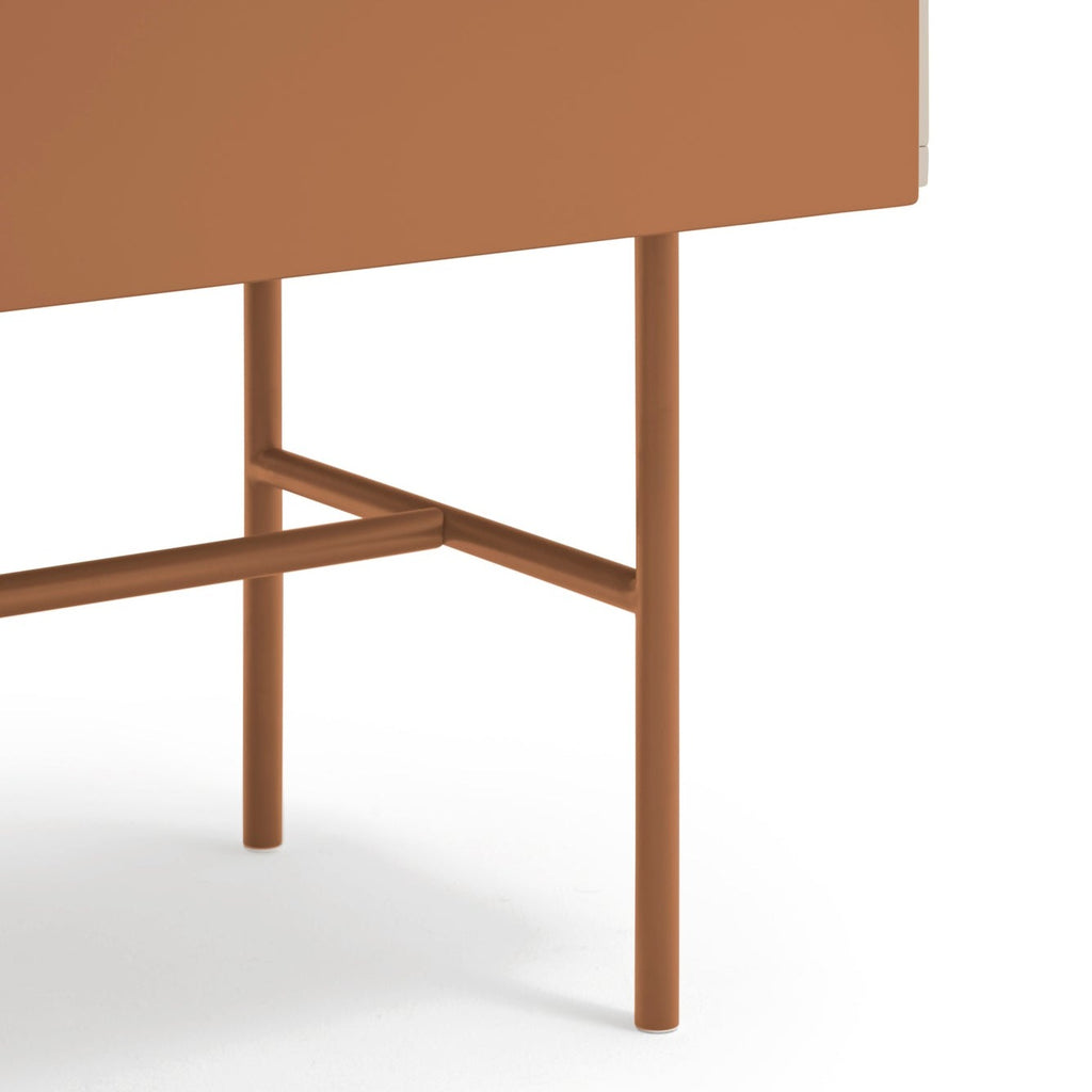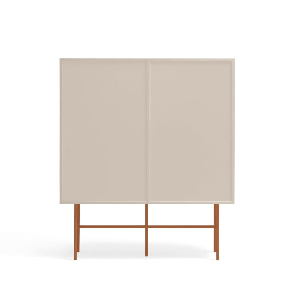 This premium storage solution combines sleek aesthetics with practical functionality, featuring four smooth-gliding drawers on soft-close runners and a versatile red sliding door that can be positioned to showcase or conceal different sections of the cabinet. The sophisticated cream lacquered MDF structure creates a stunning contrast against the red powder-coated metal frame, making this piece a true statement of contemporary style. At 120cm wide and 140cm tall, this impressive cabinet offers generous storage capacity while maintaining an elegant profile. The thoughtfully designed interior includes three shelves, providing flexible organization for all your essentials. Delivered by professional UK furniture carriers and designed for straightforward self-assembly, the Nube Sideboard transforms any room with its perfect balance of luxury and practicality—an investment piece that enhances both your storage options and your home's aesthetic appeal.
