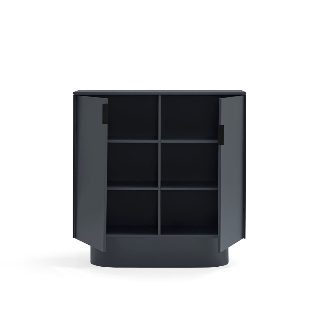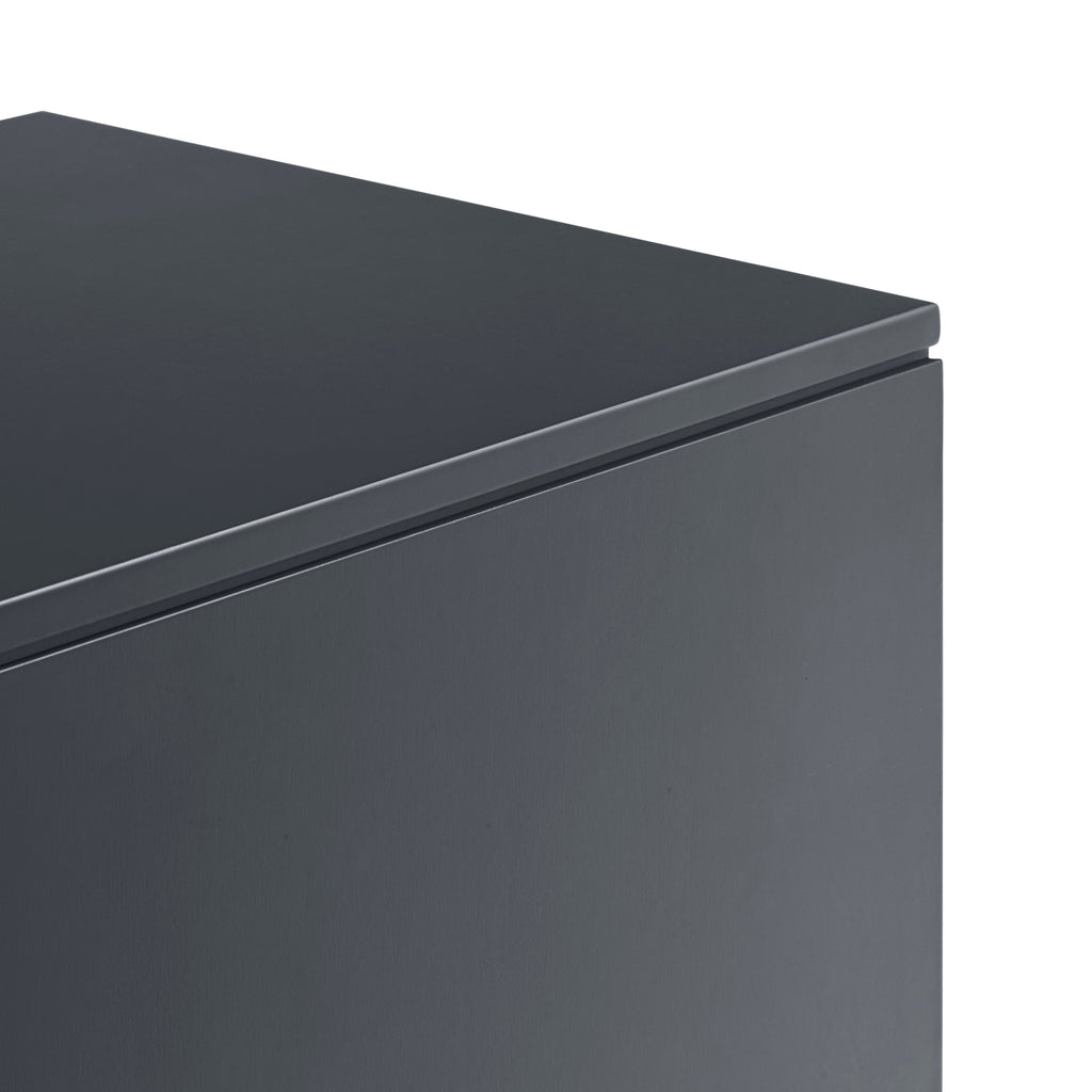 This anthracite-finished masterpiece features two doors concealing six shelves, ideal for organizing your essentials with style. Crafted from high-quality lacquered MDF, this substantial piece (64kg) makes a bold statement while offering generous storage capacity. Its sleek dimensions (W110 x D45 x H114cm) fit perfectly in contemporary interiors. Arrives with professional UK delivery, requiring simple self-assembly to complete your sophisticated home transformation.