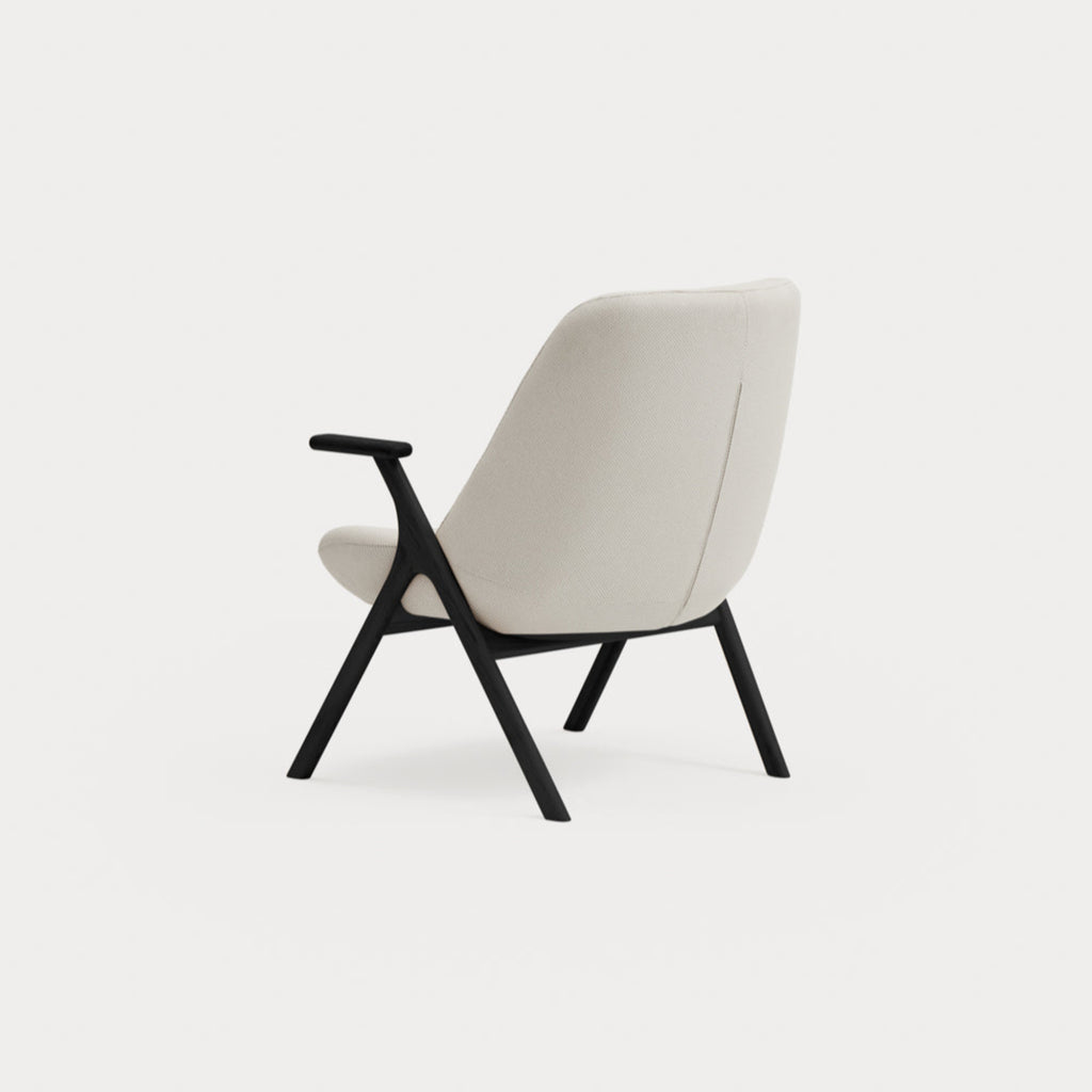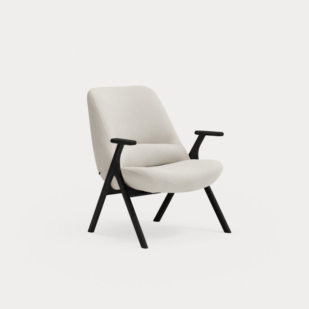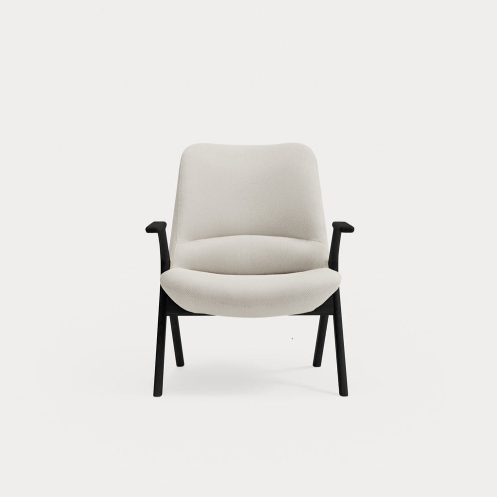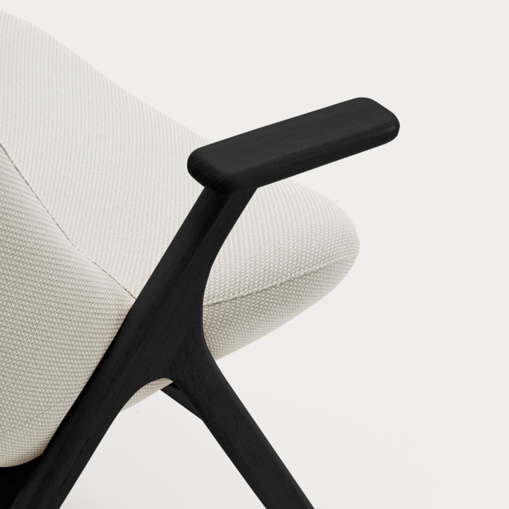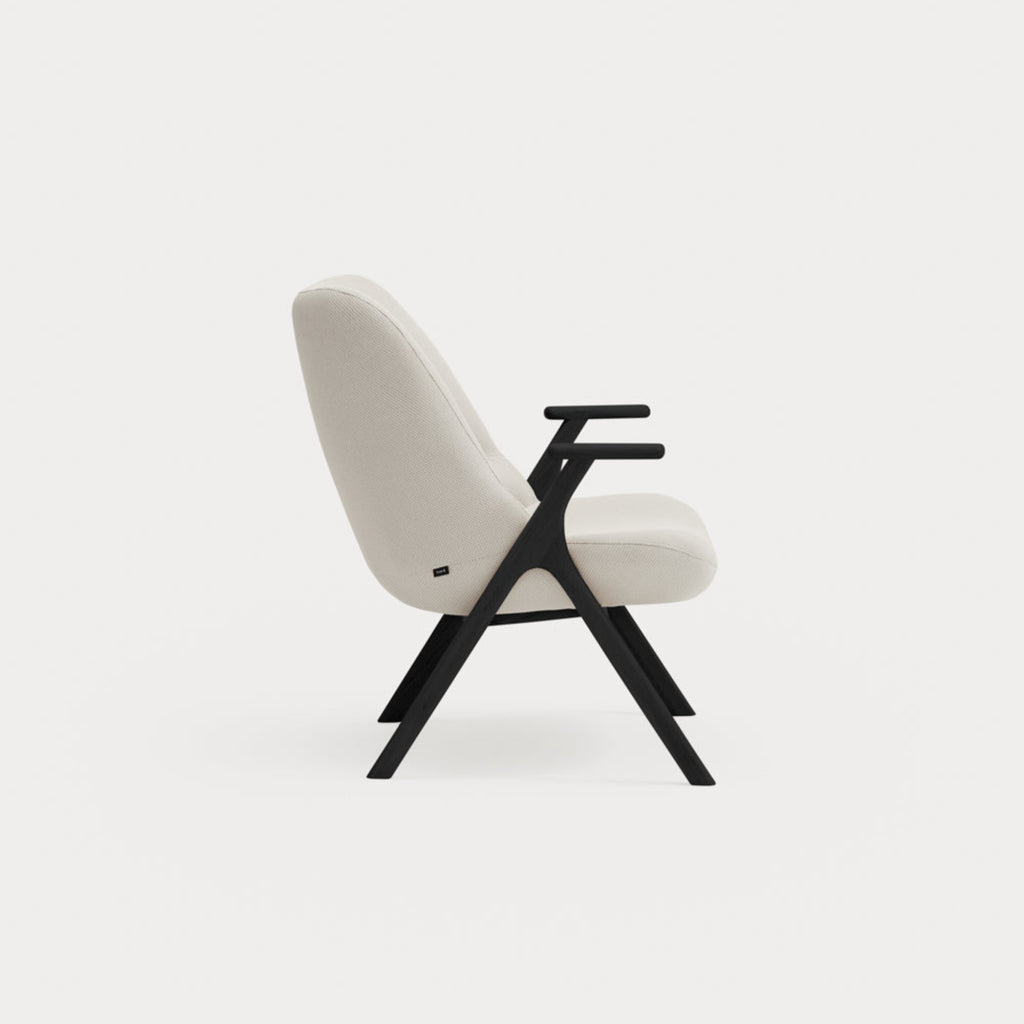 The Dins Armchair offers a stylish blend of a sleek black frame and arms with luxurious cream RONDO 61200 fabric.