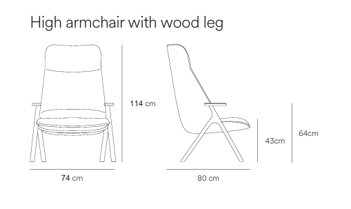 L 80 cm x W 74 cm x H 114cm Seat Height: 43 cm Arm Height: 64 cm