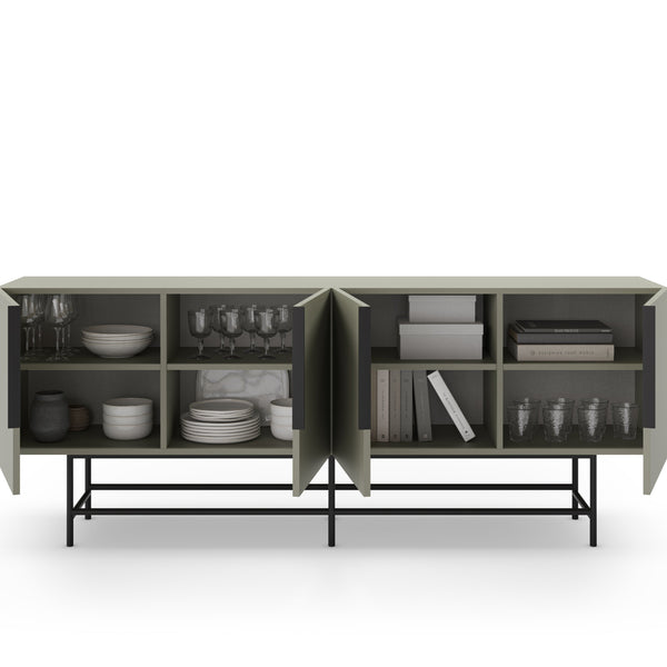 Eldia Sideboard, Four Doors, Wood and Metal - Light Green Finish