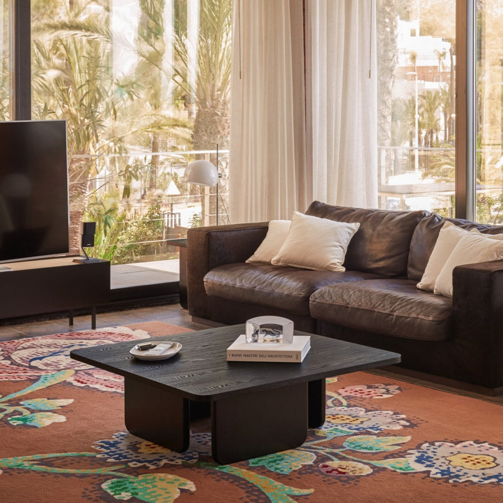 This contemporary piece showcases a luxurious Black Ash veneer top balanced on elegant solid wood legs. Perfectly proportioned at 100 x 100 x 35 cm, it offers both style and functionality for your home. Thoughtfully designed by Teulat in Spain, this sophisticated table arrives with straightforward self-assembly instructions and professional delivery throughout the UK. Make a statement with this versatile centerpiece that effortlessly combines modern design with timeless craftsmanship.