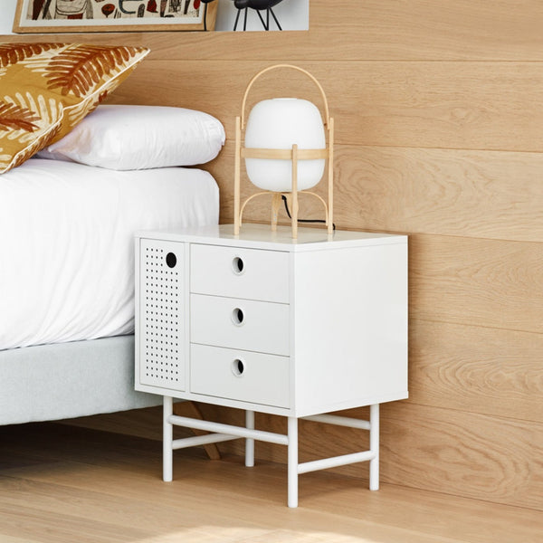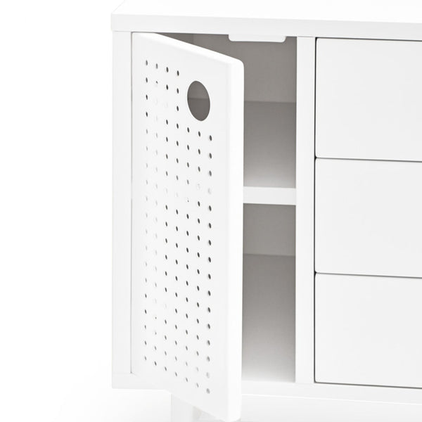 Punto Night Table, Set of Two, Three Drawer, One Industrial Design Metal Door, One Shelf, Wood with Metal Frame - Matt White Finish