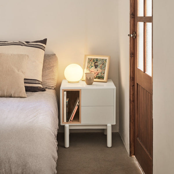 Doric Night Tables, Set of Two, Wood - White with cream Interior