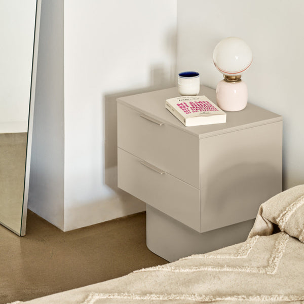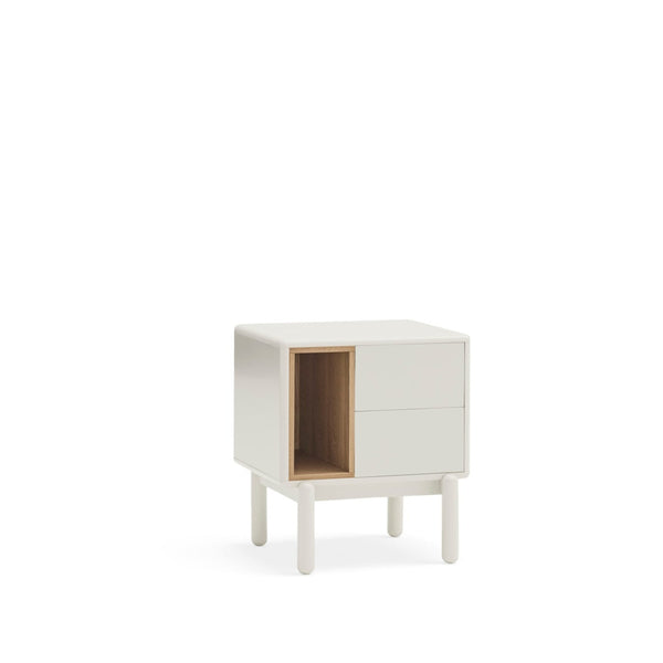 Totem Night Stand, Set of Two, Two Drawer, 50cm Square Top, Modern Wood Design - Sand Finish