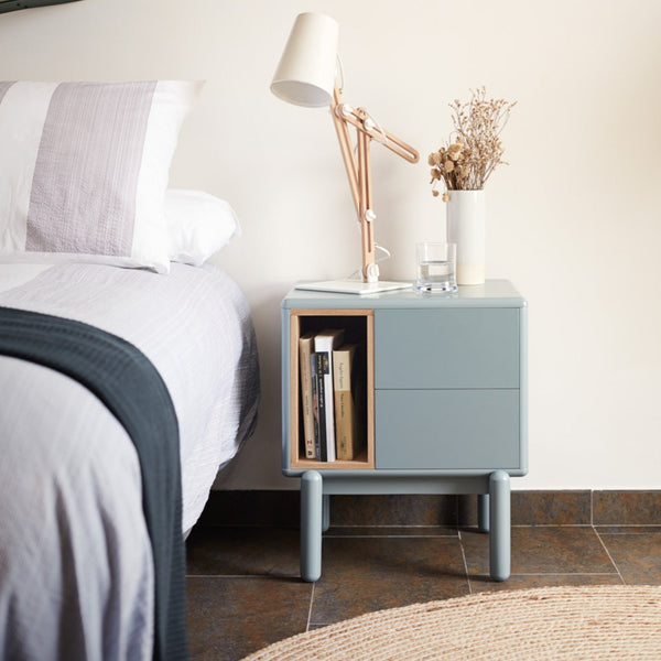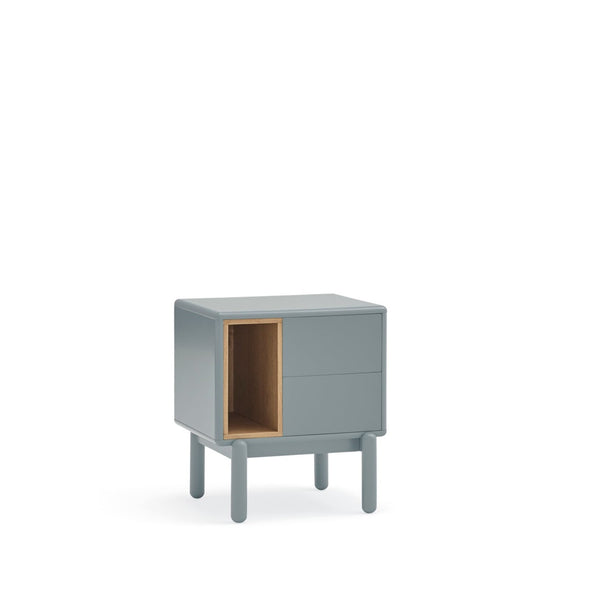 Set of Two, Corvo Night Table, Two Drawers, Storage, Wooden Top and Legs - Light Grey and Oak Finish