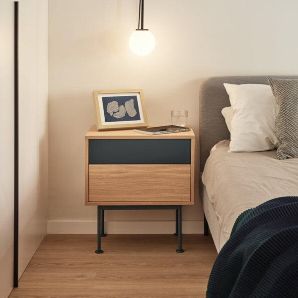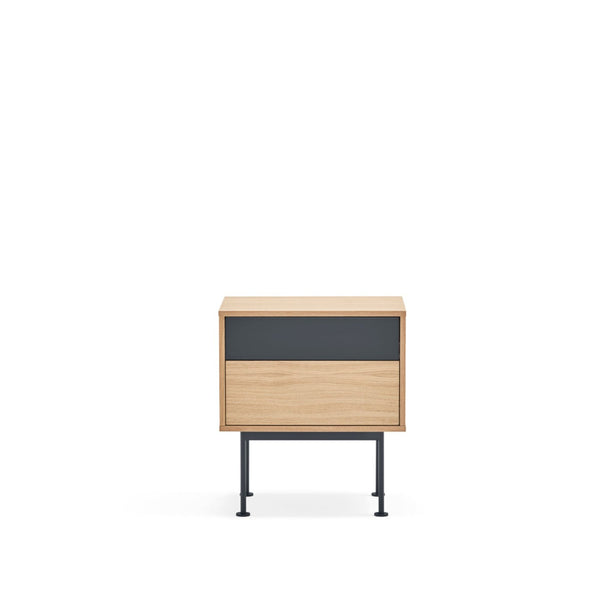 Yoko Night Table, Set of Two, Two Drawers, Modern Wood Design With Metal Frame - Anthracite and Oak Finish