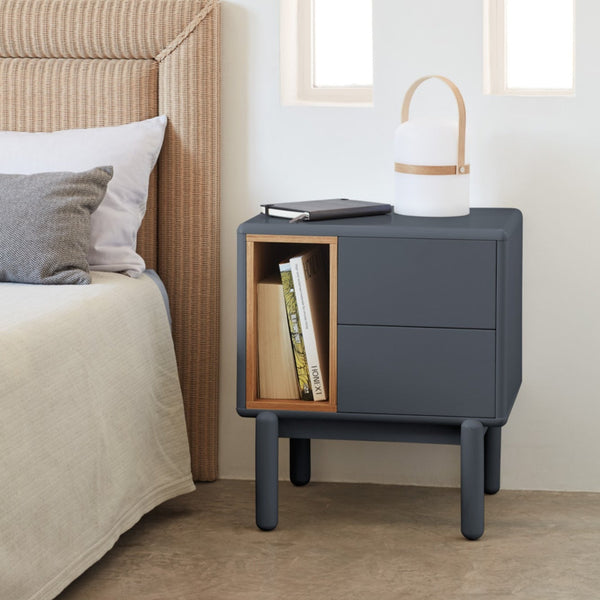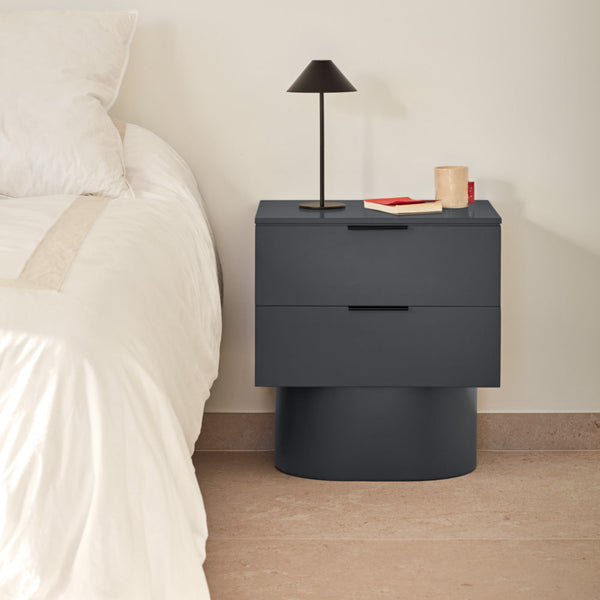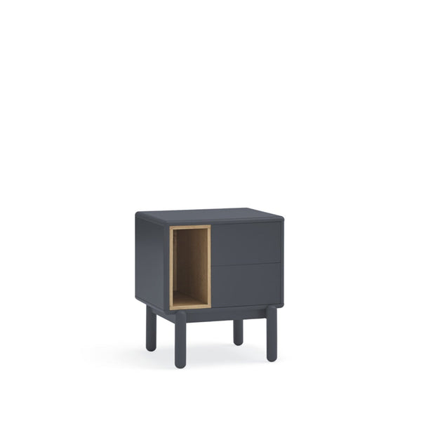 Totem Night Stand, Set of Two, Two Drawer, 50cm Square Top, Modern Wood Design - Anthracite Finish