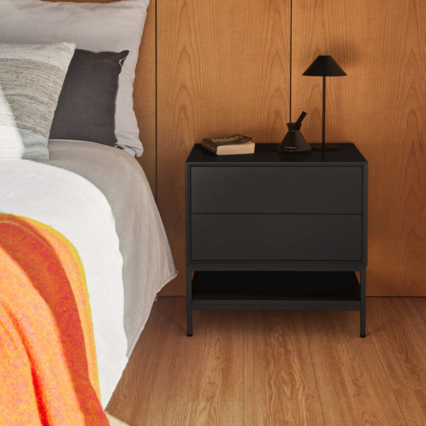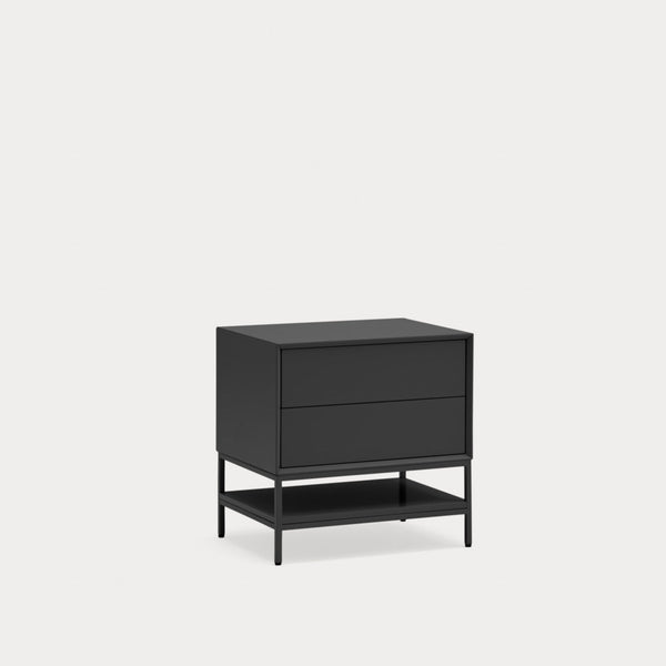 Platt Night Table, Set of Two, Two Drawer, Wood with Metal Frame, Metal Shelf, Square 55cm - Black Finish