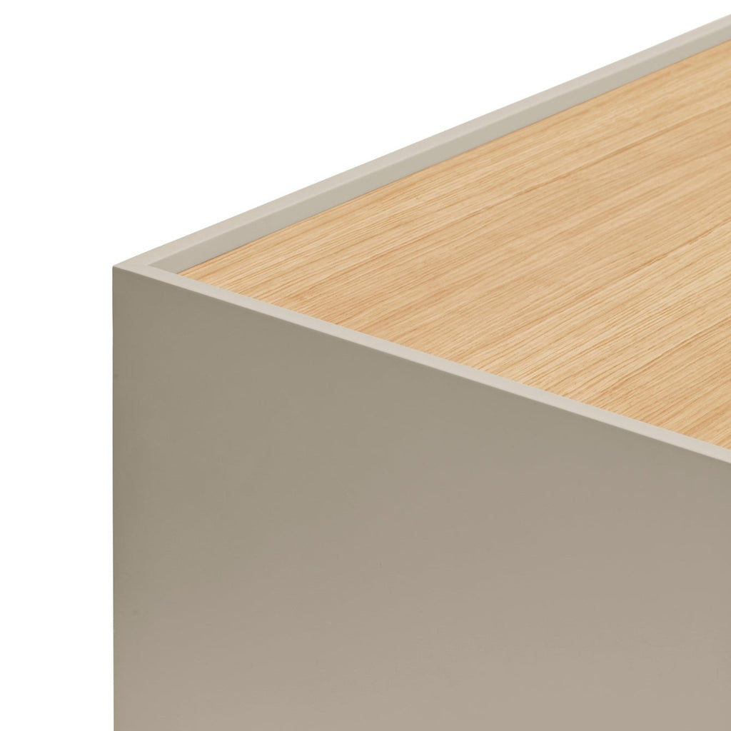 Each features a distinctive Sand MDF structure with two convenient drawers on whisper-quiet soft close runners. The elegant contrast of oak-finished top and upper drawer against the Sand lower drawer creates visual interest, while the coordinating powder-coated metal frame adds contemporary appeal. Perfectly proportioned at W50 x D35 x H47cm, these tables offer practical bedside storage without overwhelming your space. Professional UK delivery included, with simple self-assembly required to complete your bedroom transformation.