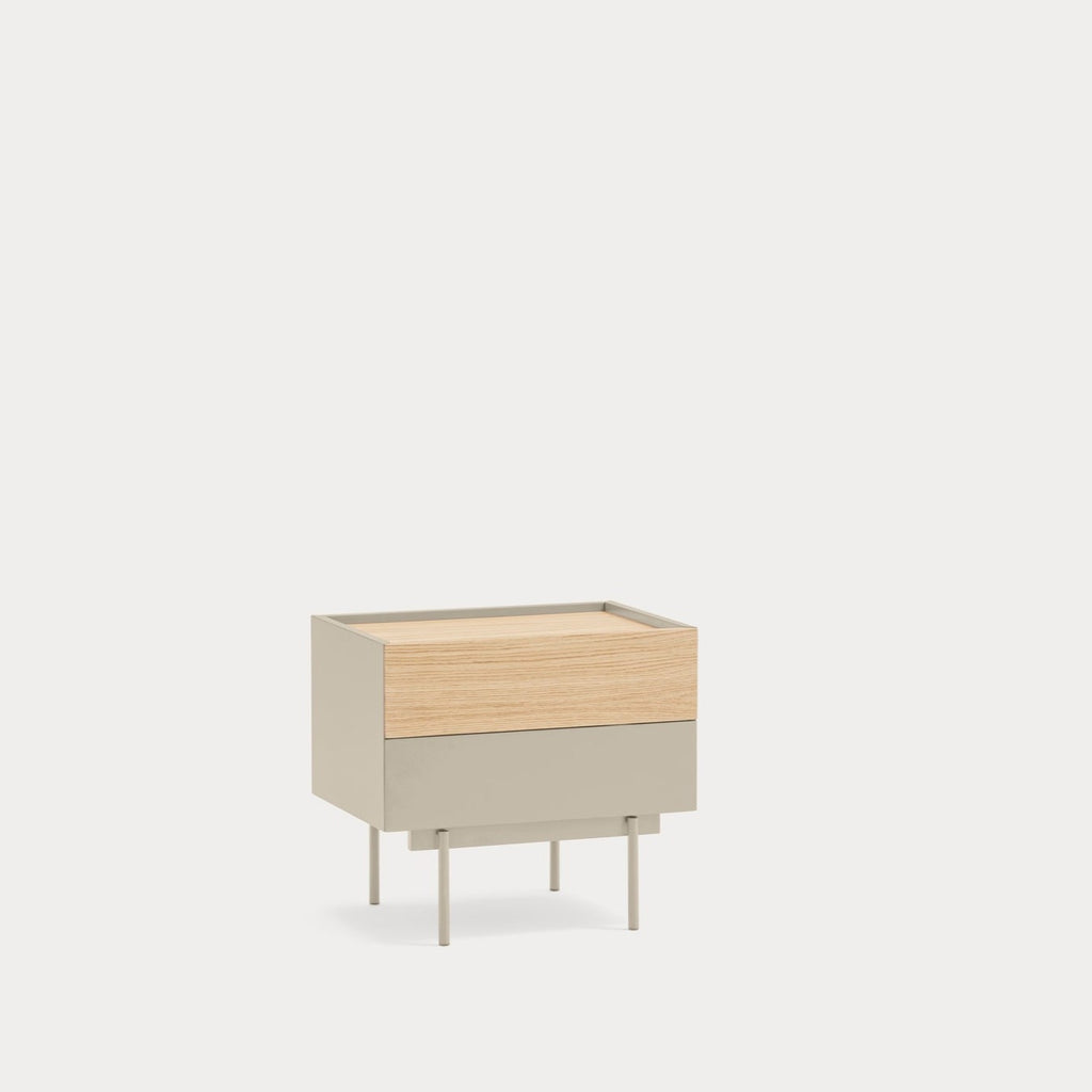 Otto Night Table, Set of Two, Two Drawers, Wood with Metal Frame, Square 50cm - Sand and Oak Finish