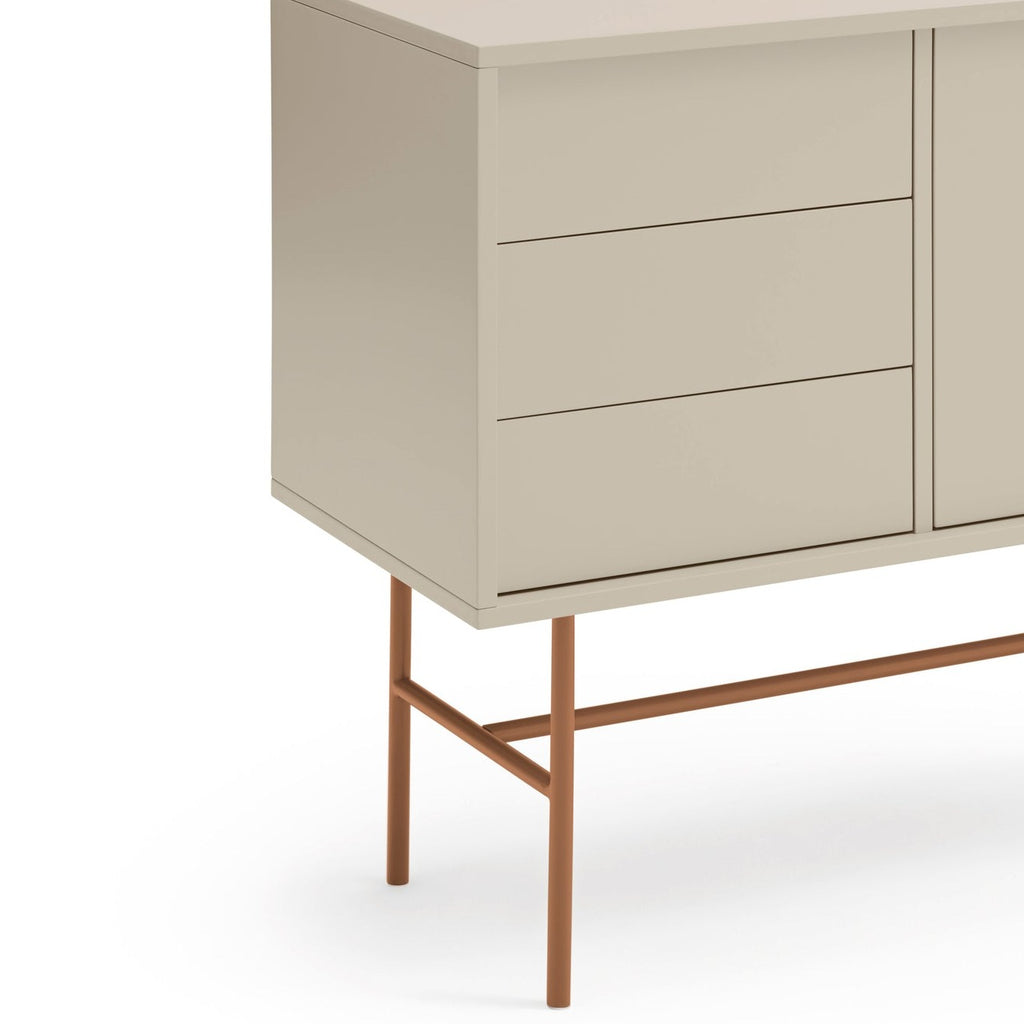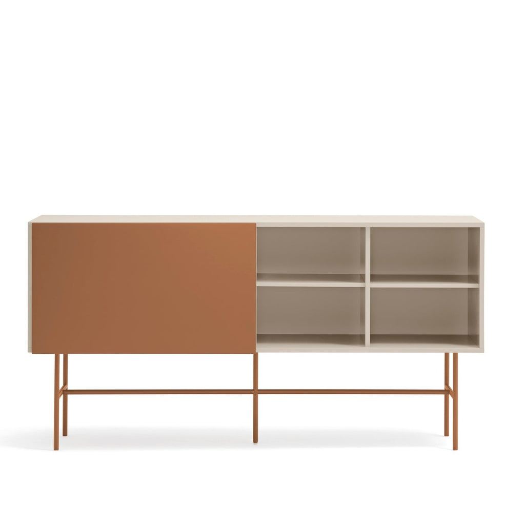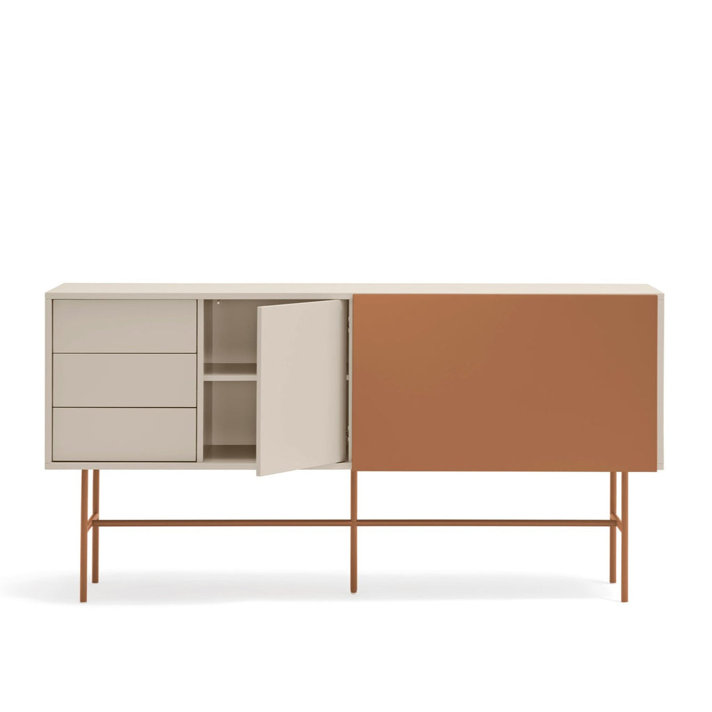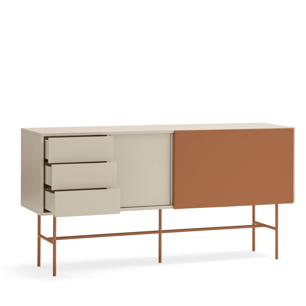 Nube Sideboard, Three Drawers, Two Doors (One Sliding), Three Shelves, Wooden with Metal Frame - Sand and Red Brick Finish