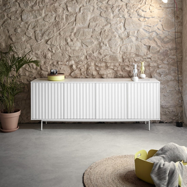 Doric Sideboard, Four Door, Four Drawers, Eight Shelves - Matt White Finish