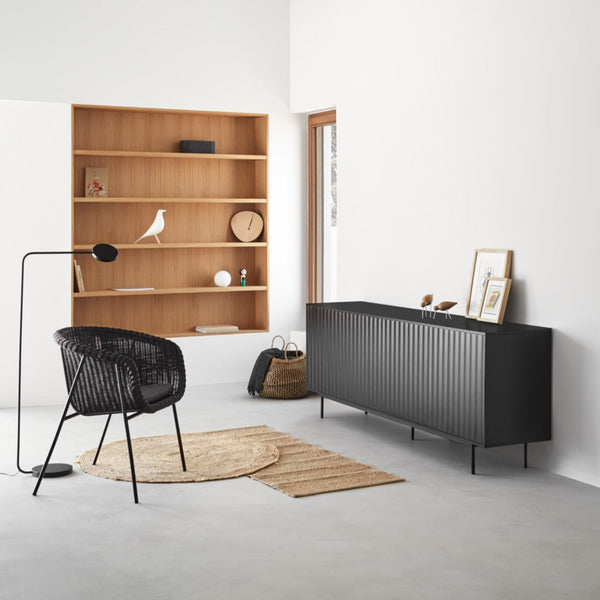 Doric Sideboard, Three Doors, Three Drawers, Six Shelves - Matt Black Finish