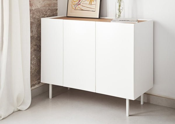 Doric Sideboard, Three Doors, Three Drawers, Six Shelves - Matt White Finish