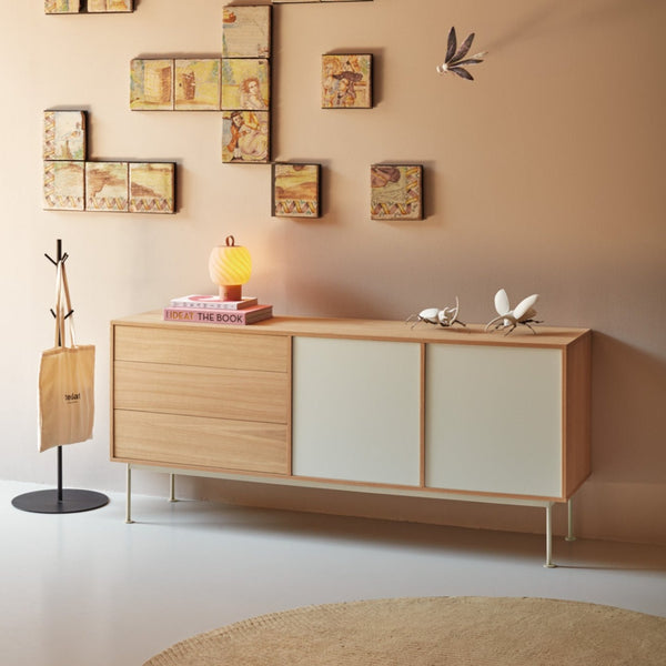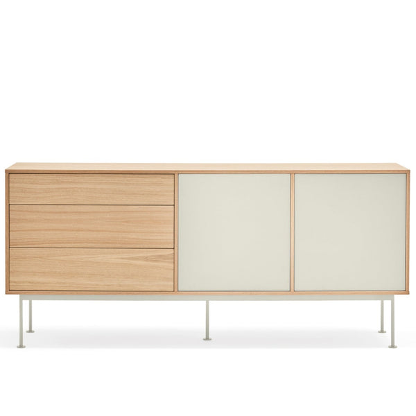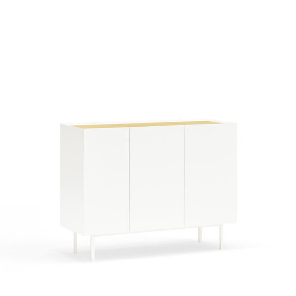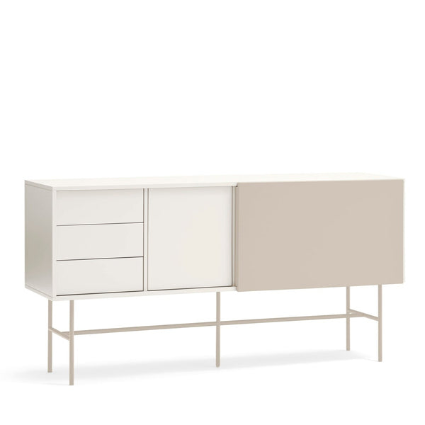 Nube Sideboard, Three Drawers, Two Doors (One Sliding), Three Shelves, Wooden with Metal Frame - Cream and Sand Finish