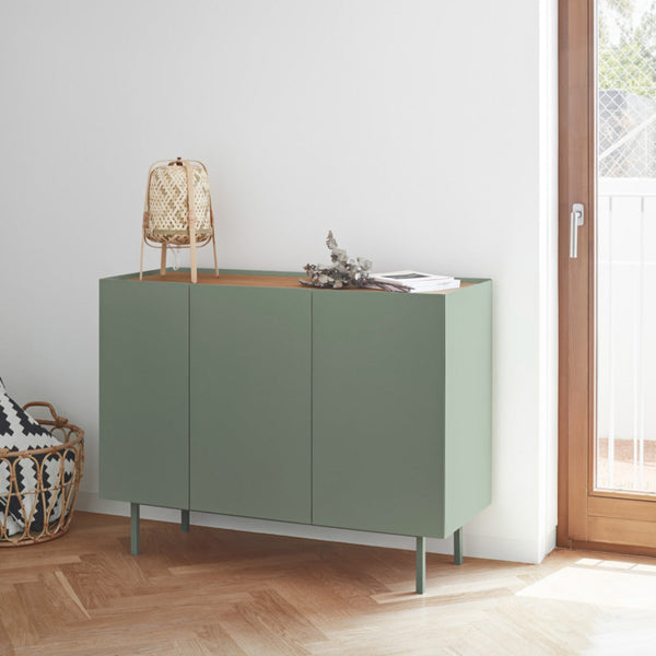 Arista Sideboard, Three Door, Three Drawer, Three Shelves - Matt Green and Light Oak Finish