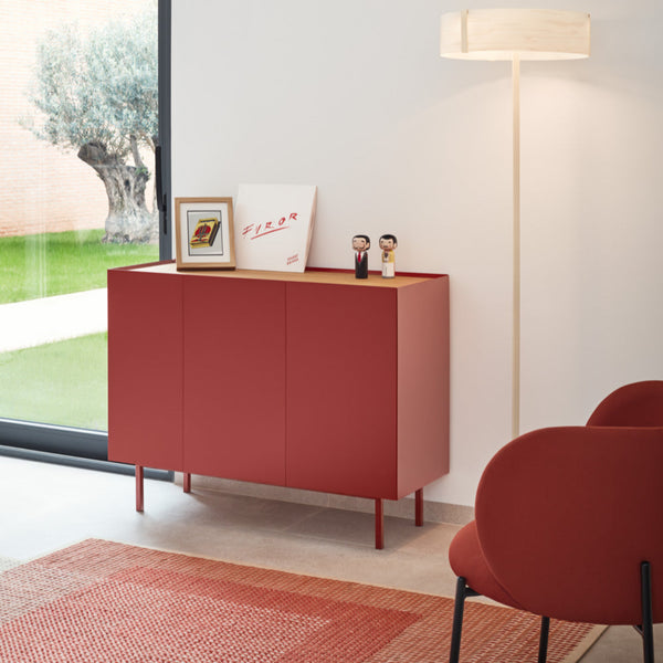 Arista Sideboard, Three Door, Three Drawer, Three Shelves - Matt Red and Light Oak Finish