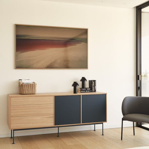 Yoko Sideboard, One Door, Three Drawers, Two Shelves, Modern Wood Design With Metal Frame - Anthracite and Oak Finish