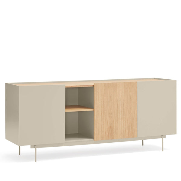 Otto Sideboard, Three Doors, Three Drawers, Six Shelves, Storage Space - Sand and Oak Finish