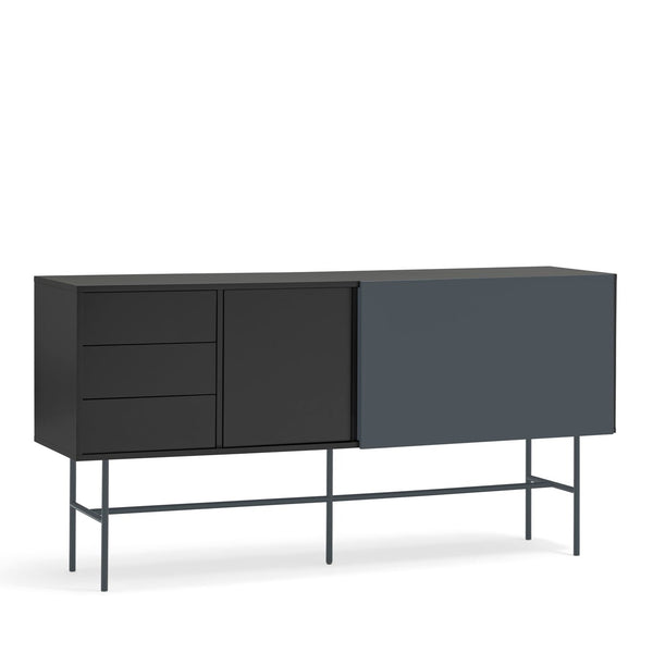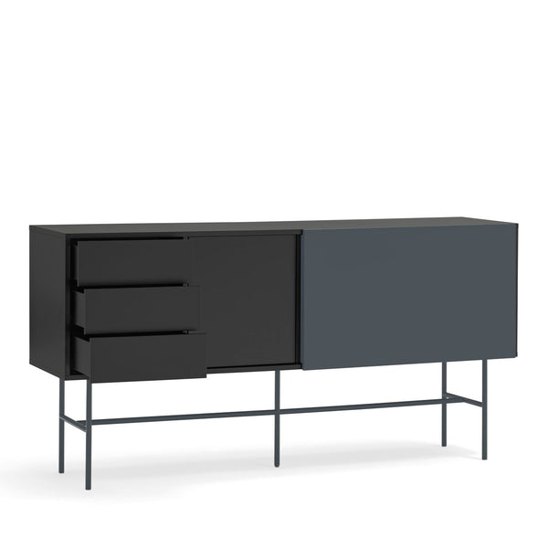 Nube Sideboard, Three Drawers, Two Doors (One Sliding), Three Shelves, Wooden with Metal Frame - Black and Anthracite Finish