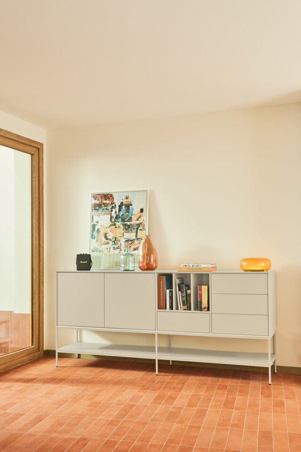 On saleBologna Sideboard, Two Door, Three Drawer - Gloss White and Grey Finish