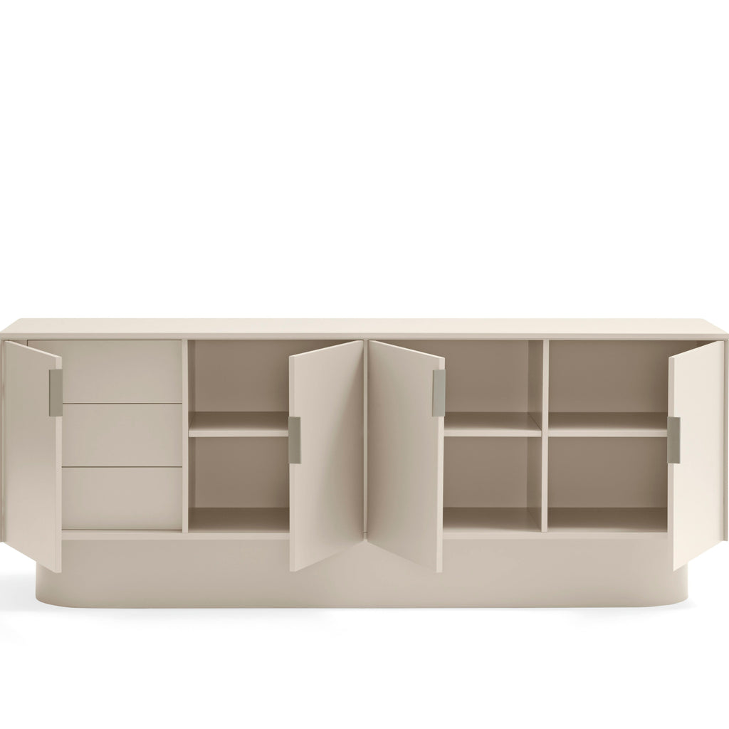 Totem Sideboard, Four Door, Three Drawer, Six Shelves, Modern Wood Design - Sand Finish