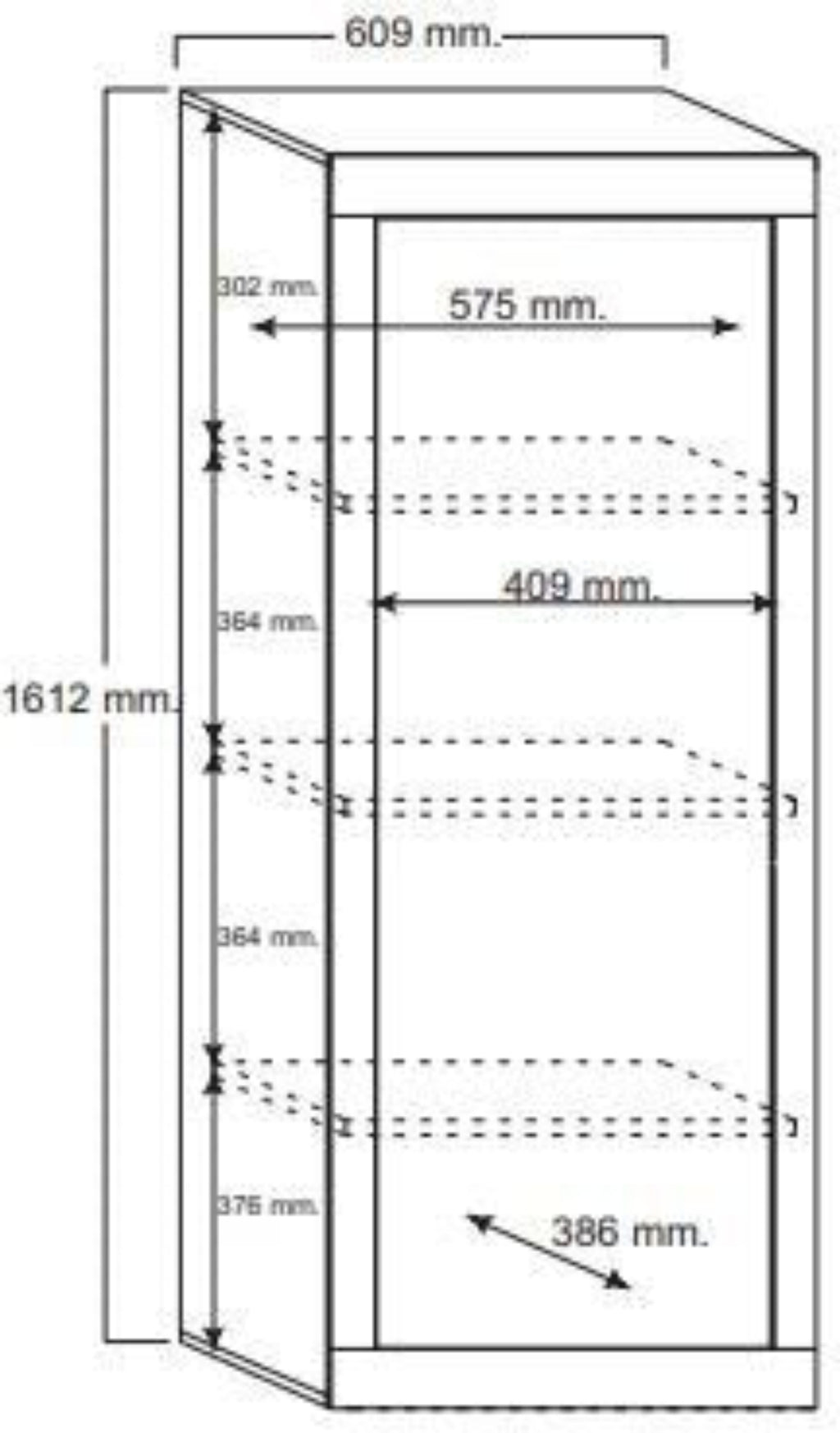 L 61 cm x W 43 cm x H 162 cm