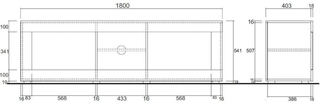 Featuring two outward-opening doors with quality metal hinges, it offers spacious storage compartments perfect for organizing your media essentials. The central open section includes a glass shelf and AV access point, ideal for your devices. With a sturdy top supporting up to 30kg, this unit measures W181 x D43 x H56 cm, making it a practical and elegant addition to your living space. Elevate your entertainment setup with this modern, durable TV stand.