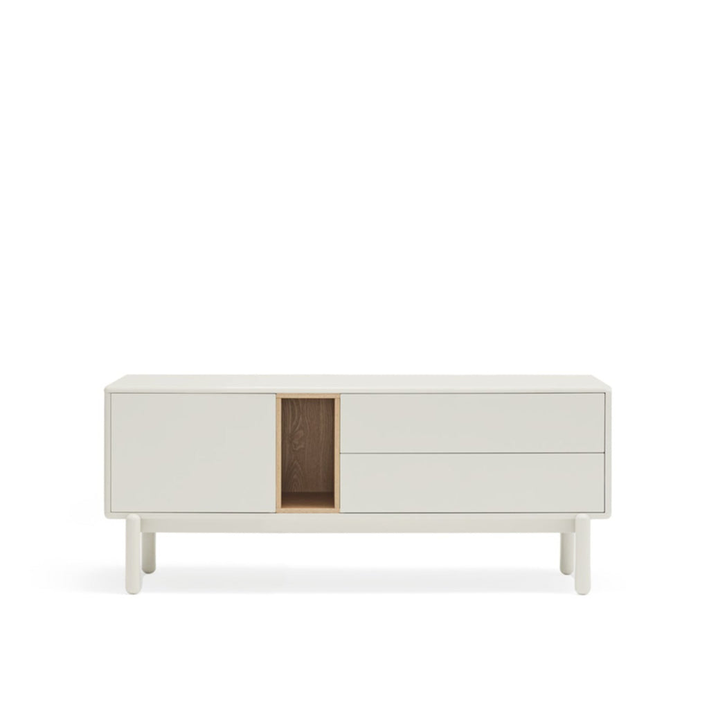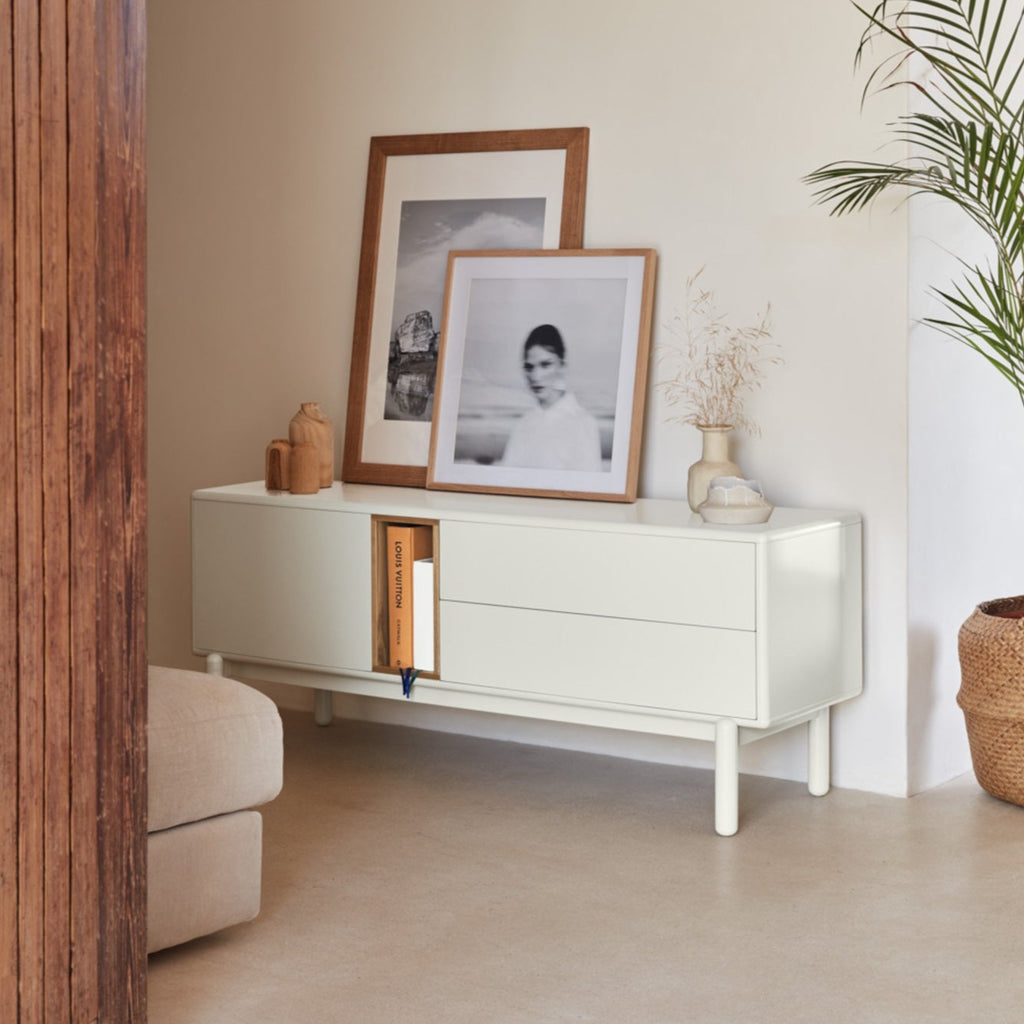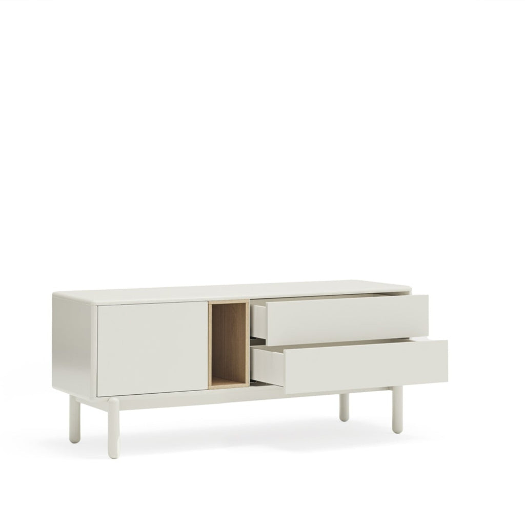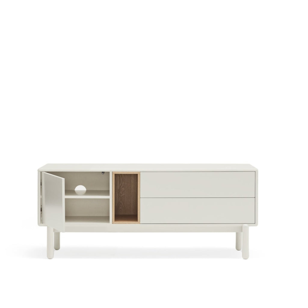 The striking cream and oak finish complements any décor while one door and two spacious drawers keep entertainment essentials perfectly organized. Expertly crafted with lacquered MDF and solid wood legs, this 140cm Spanish-designed statement piece offers dedicated AV access for seamless connectivity. The veneered open shelf provides ideal display space for media components. Professionally delivered to your door and ready for simple self-assembly, this Teulat creation transforms ordinary rooms into sophisticated entertainment spaces. Upgrade your home's style and functionality today!