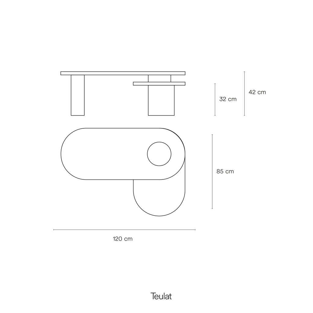 w 120 cm x d 85 cm x h 32 cm ( lower table ) 42cm ( higher table )