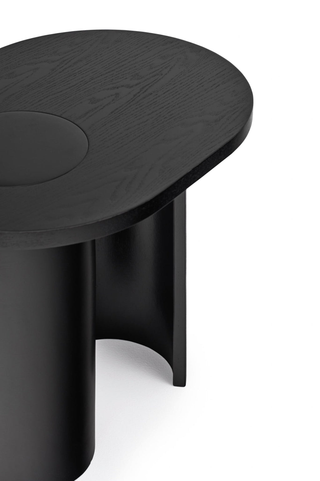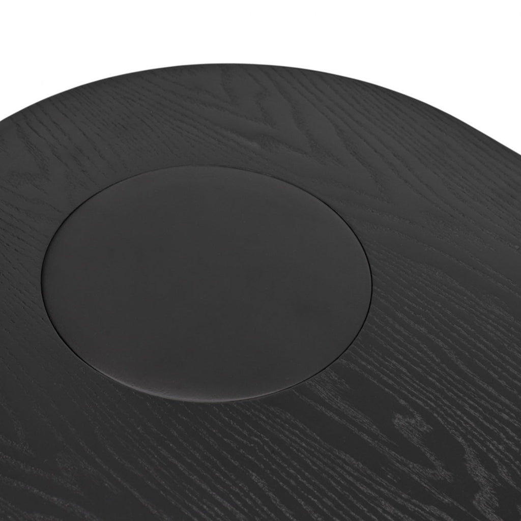 These sophisticated tables feature fluid oval tops in rich black ash veneer, complemented by gracefully curved legs with matching lacquer finish. Designed by Morten Georgsen for Teulat, Spain, each table measures 60cm x 45cm x 55cm, providing perfect bedside storage while enhancing your contemporary décor. Professional UK delivery included, with minimal assembly required. Transform your bedroom's aesthetic with this designer duo.
